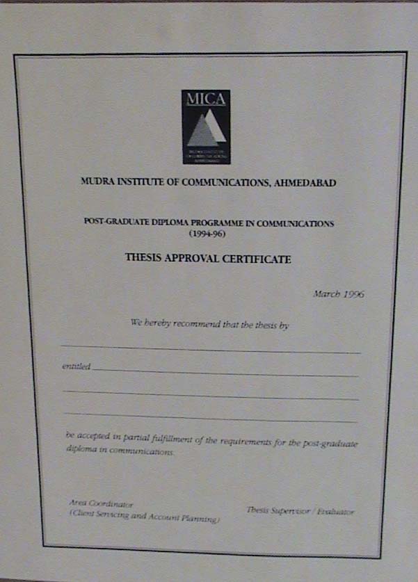 Thesis Approval Certificate-PGDPC, Disseertation Certificate, Post-Graduate Diploma Programme in Communications (PGDPC), Batch 1994-1996