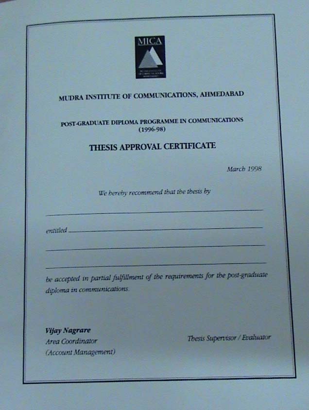 Thesis Approval Certificate, Dissertation Certificate, Post-Graduate Diploma Programme in Communications, Batch 1996-1998