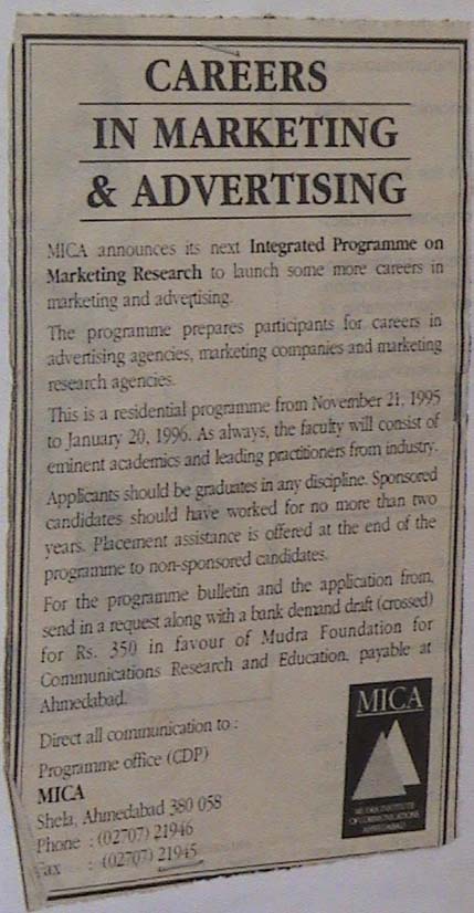 Integrated Programme on Marketing Research, Careers in Marketing & Advertising, Advertisement