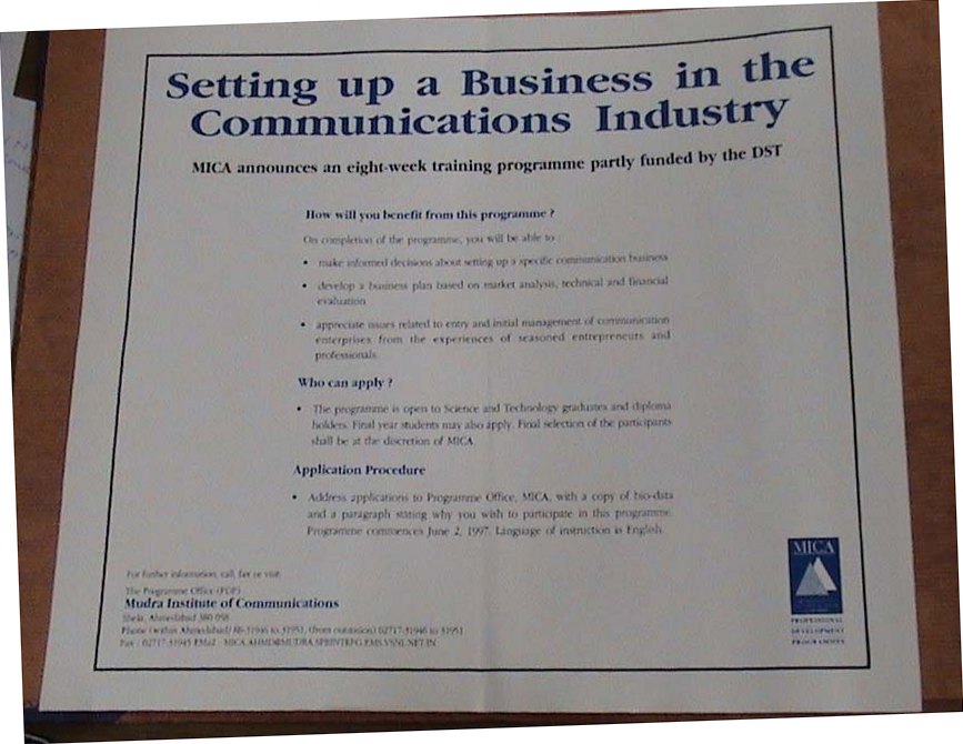 Setting Up A Business In The Communications Industry 1997 (Announcement-PDP Programme)