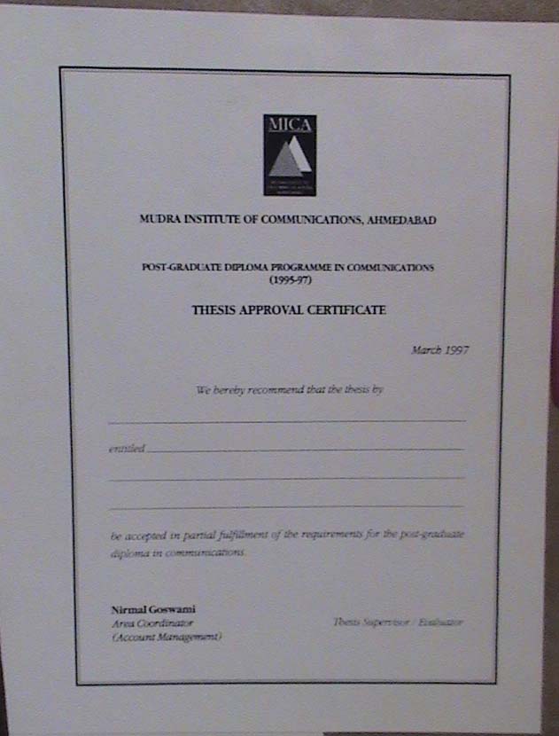 Thesis Approval Certificate: Post Graduate Diploma Programme in Communications (PGDPC) 1995-1997