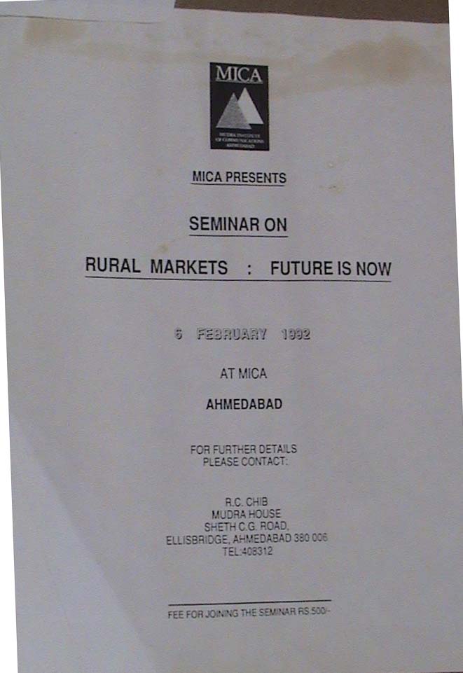 MICA Presents Seminar on Rural Markets: Future Is Now 1992 (Leaflet)