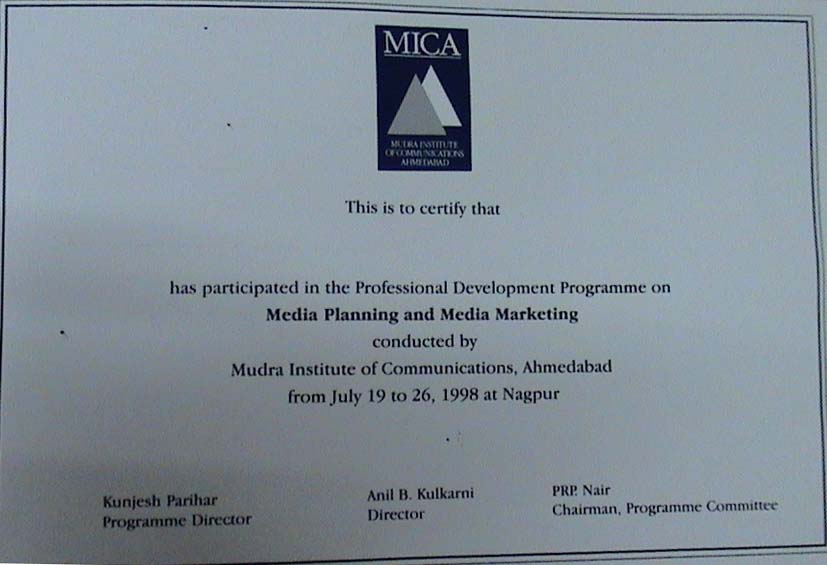 Programme on Media Planning and Media Marketing 1998 (Certificate)