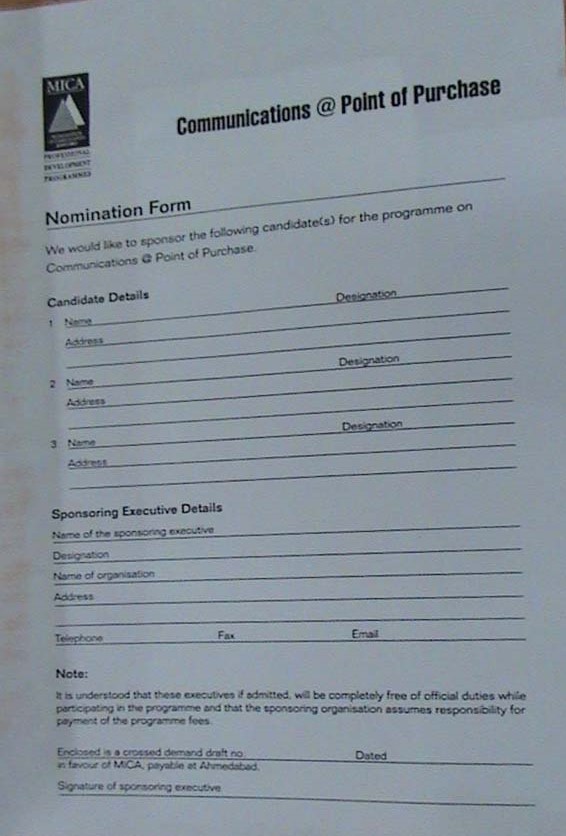 Communication@point of purchase (Nomination Form) [2001, August 17-18]